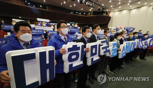 대선 승리 다짐 퍼포먼스하는 민주당 |
