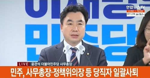 윤관석 사무총장은 이날 국회 기자회견에서 "민주당의 주요 정무직 당직 의원들은 비장한 각오로 새 민주당 만들기 위해 선당후사의 마음으로 일괄 사퇴의 뜻을 함께 모았다"고 말했다.