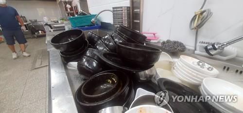 지난 7월 12일 춘천지역 단수로 쌓인 음식점 그릇 |