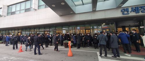(서울=연합뉴스) 임성호 송은경 이동환 윤우성 기자 = 전두환 전 대통령의 빈소가 차려진 지 이틀째인 24일 오후 서울 신촌세브란스병원 장례식장에 보수 성향 단체 회원들이 몰리며 북새통을 이뤘다.