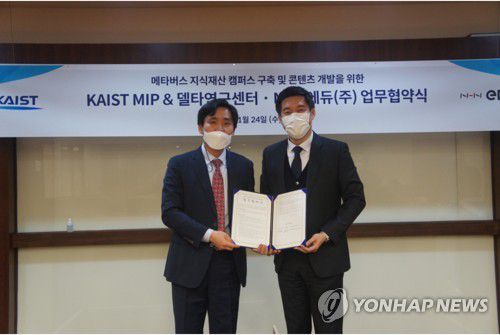 (서울=연합뉴스) 최현석 기자 = 에듀테크 기업 NHN에듀는 한국과학기술원(KAIST)와 교육용 메타버스 플랫폼 활성화 및 지식재산 교육 고도화를 위한 업무협약(MOU)를 체결했다고 25일 밝혔다.