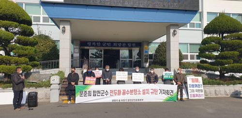 시민단체 '생명의 숲 되찾기 합천군민운동본부'는 25일 합천군청 앞에서 기자회견을 열고 군이 분향소 설치를 사실상 묵인했다고 비판했다.