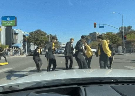 이날 BTS는 미국의 유명 토크쇼 '더 레이트 레이트 쇼 위드 제임스 코든'(The Late Late Show with James Corden·제임스 코든쇼) 녹화에 참여했는데, 촬영 장소는 다름 아닌 방송국 앞 횡단보도였다.