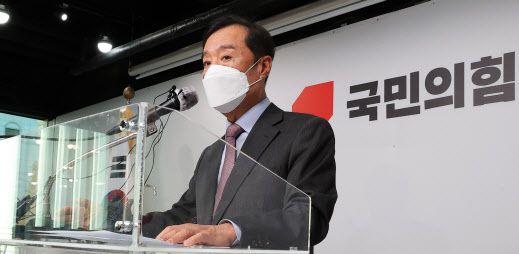 김병준 국민의힘 상임선대위원장이 26일 오전 서울 여의도 중앙당사에서 기자간담회를 열고 향후 계획과 각오에 대해 얘기하고 있다. (사진=연합뉴스) |