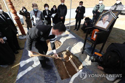고인의 마지막 길을 배웅한 유가족은 유골함이 땅속에 안치된 순간에야 영원한 이별을 실감한 듯 참았던 눈물을 터뜨렸다.