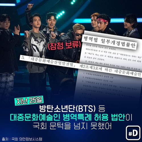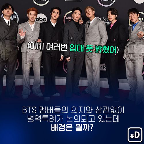 그러나 병역법 시행령에는 '예술·체육 분야의 특기'에 '대중문화'를 규정하지 않고 있어 BTS와 대중문화 예술인들은 병역 특례 적용을 받을 수 없습니다.