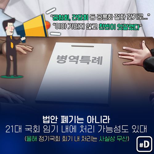 법안심사소위를 통과하면 국방위 전체 회의에 상정될 예정이었으나, 찬반이 엇갈리면서 의결이 이뤄지지 못한 채 잠정 보류됐습니다. 따라서 올해 정기국회 회기내 처리는 사실상 무산된 셈인데요.