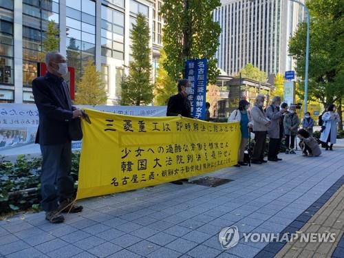 단체 측은 도쿄 중심가에 있는 미쓰비시중공업 본사 앞에 "소녀에게 시킨 가혹한 노동을 보상하라", "한국 대법원의 (배상) 판결을 이행하라"고 쓰인 노란색 플래카드를 내걸었다.