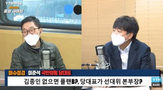 YTN 라디오 '출발 새아침'에서 이준석 국민의힘 대표와 만난 방송인 김제동의 모습. 사진=YTN '출발 새아침' 캡쳐 |