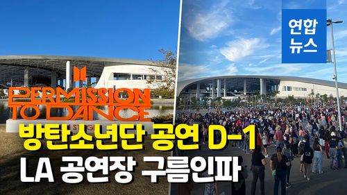 (서울=연합뉴스) 그룹 방탄소년단의 콘서트를 하루 앞둔 26일(현지시간) 미국 로스앤젤레스 소파이 스타디움 인근은 '축제'를 미리 즐기러 온 수천 명의 인파로 낮부터 북적였습니다.