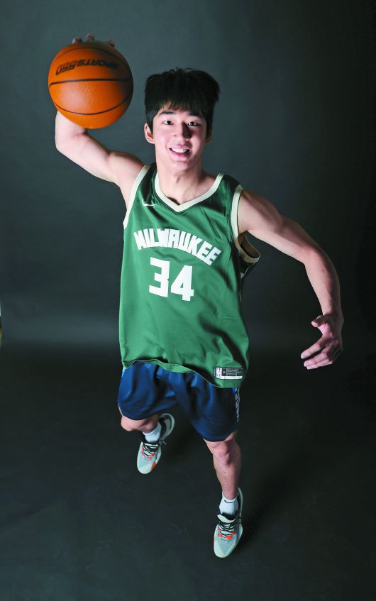 NBA 밀워키 유니폼을 입고 덩크 슛 포즈를 취하는 여준석. 그는 내년 1월 프로농구 올스타전 덩크 콘테스트에 나선다. 김민규 기자 |