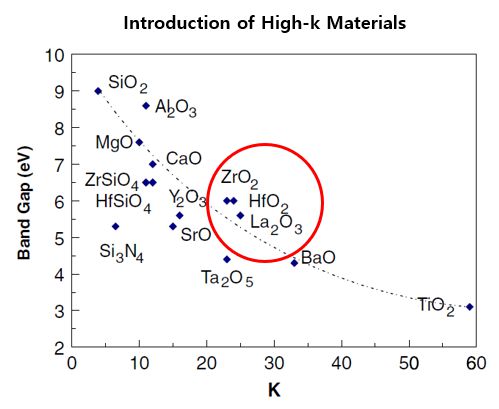 High-K 절연막 연구는 오랜 시간 지속됐지만, 업계에서는 이 절연막이 '골치 아픈 녀석'으로 통합니다. 기존 실리콘옥사이드에 비해 압도적 유전율 외엔 딱히 장점이 없기 때문입니다.
