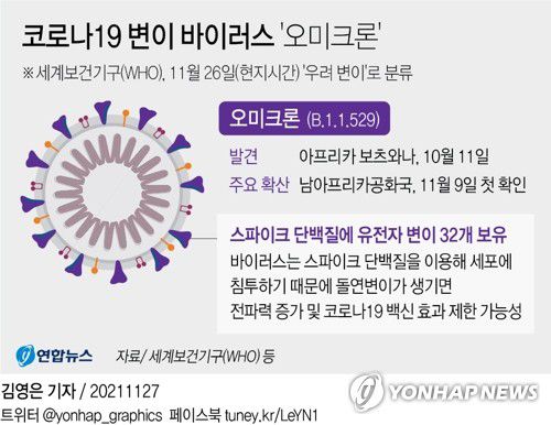 [그래픽] 코로나19 변이 바이러스 '오미크론' |