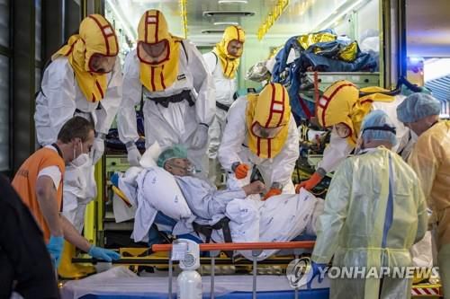 코로나19 환자를 이송하는 체코의 한 병원 |