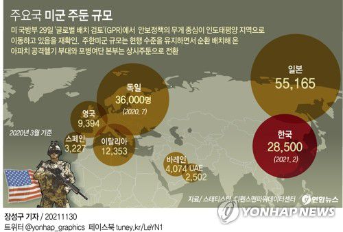 미 국방부는 29일(현지시간) 조 바이든 대통령 취임 후 처음으로 해외 주둔 미군 배치에 대한 검토를 마치고 이 같은 내용을 포함한 결과를 공개했다.