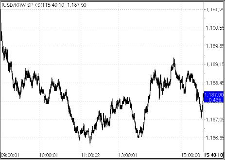 30일 서울외국환중개에 따르면 환율은 전 거래일 종가(1193.00원) 대비 5.10원 하락한 1187.90원에 마감했다. 지난 24일(1186.50원) 이후 나흘 만에 1180원대로 하락했다. 이날 환율은 전일 대비 1.30원 내린 1191.70원에 출발했으나 곧이어 하락 전환해 장중 한 때 1186.00원까지 내렸다.