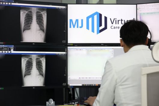 국내 신종 코로나바이러스 감염증(코로나19) 확진자가 처음으로 4,000명대를 넘어선 지난 24일 오후 경기도 고양시 명지병원 재택치료지원센터에서 의료진이 코로나19 환자를 대상 원격 치료 상담을 하고 있다. 뉴스1 |