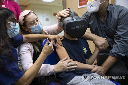 가상현실 체험하며 코로나 백신 맞은 이스라엘 8세 어린이 |