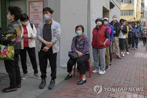 홍콩 코로나19 백신 접종센터 앞에 선 대기줄 |