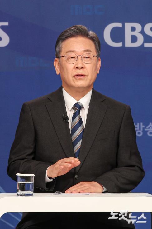 이재명 더불어민주당 대선후보가 2일 서울 양천구 한국방송회관에서 열린 '방송기자클럽 토론회'에 참석해 모두발언 하고 있다.