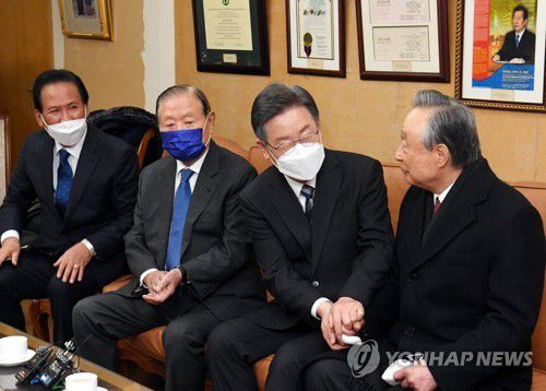 (서울=연합뉴스) 고동욱 강민경 기자 = 더불어민주당 이재명 대선후보는 2일 동교동계 원로들과 간담회를 갖고 여권 통합 행보를 이어갔다.