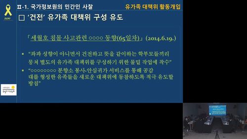 사참위는 2일 제114차 전원위원회에서 이 같은 내용을 담은 정보기관의 민간인 사찰 조사결과 보고서를 중간보고 형태로 발표했다. 국정원은 사참위에 세월호 관련 자료 68만여건 열람을 지원했고, 사참위는 이 자료들을 비식별 처리 상태로 열람해왔다.