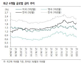 다만 최 팀장은 “소비자물가(CPI) 확산세가 당분간 지속할 것으로 예상되고, 오미크론 우려도 완화될 여지가 있다는 점에서 최근의 금리 현상을 너무 부정적으로 바라볼 필요는 없다고 판단한다”고 주장했다.