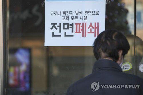 굳게 닫힌 교회 문 |