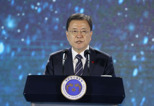 이날 연설에서 문 대통령은 "우리 경제사에서 2021년은 무역의 해로 기록될 것"이라며 최단 기간 무역 1억조 달성에 이어 올해 사상 최대의 무역 규모를 넘긴다는 점을 상기했다.