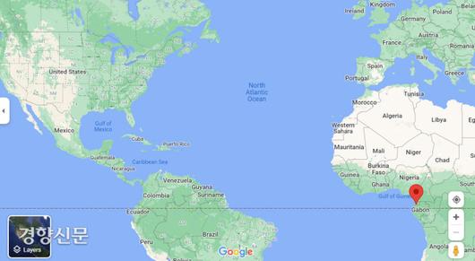 중국이 미국 동부 해안에서 대서양 건너편에 있는 아프리카 적도기니에 군사기지 건설을 시도하고 있다고 월스트리트저널이 5일(현지 시각) 미국 정부 당국자들을 인용해 보도했다. 지도 왼쪽 위가 미국이고 오른쪽 아프리카 대륙에 붉은 점으로 표시된 곳이 적도기니다. |