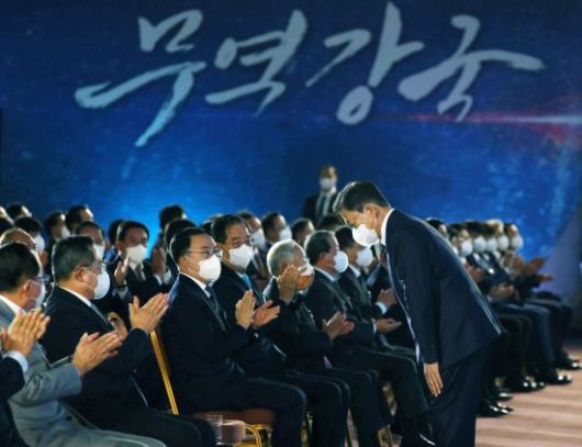 한편 박 대변인은 "문 대통령은 사전환담 후 전·현직 무역협회 회장들과 기념식에 동반 입장했는데, 이는 코로나19 위기 속에서도 최고의 무역 성과를 거두기까지 함께 애써온 무역인들의 노고에 대한 감사와 존중의 의미를 담은 것"이라고 설명했다.