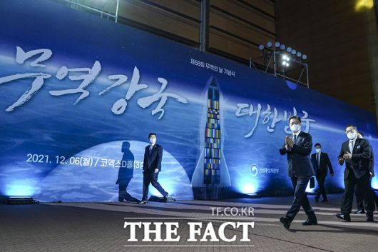 문 대통령은 사전환담 후 전·현직 무역협회 회장들과 기념식에 동반 입장했는데, 이는 코로나19 위기 속에서도 최고의 무역 성과를 거두기까지 함께 애써온 무역인들의 노고에 대한 감사와 존중의 의미를 담은 것이라고 청와대는 설명했다.