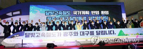 이들은 "달빛 고속철도 예비타당성 조사 면제와 조기 착공은 영호남 지역발전뿐 아니라 대구와 광주의 2038 하계 아시안게임 유치·개최, 수도권 중심 인구·산업 구조 재편성을 통한 지역 균형 발전의 선결 과제"라고 주장했다.