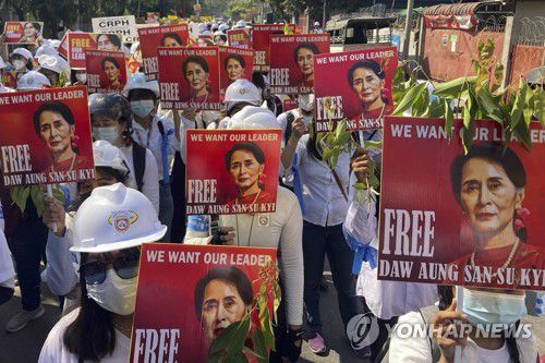 아웅산 수치 고문 석방을 촉구하는 시위대 2021.3.5(자료사진) |
