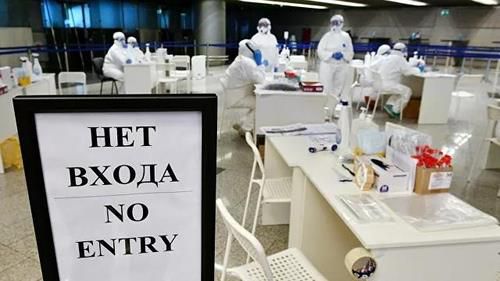 모스크바 남쪽 브누코보 국제공항의 의료진 |