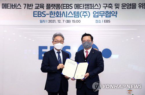 (서울=연합뉴스) 김철선 기자 = 한화시스템[272210] ICT(정보통신기술) 부문이 한국교육방송공사(EBS)와 함께 메타버스(3차원 가상공간) 기반 공공교육 서비스 개발에 나선다.