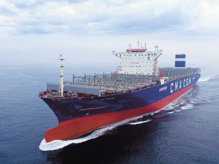 현대삼호중공업이 세계 최초로 건조해 지난해 9월 인도한 LNG추진 초대형 컨테이너선. [현대중공업 제공] |
