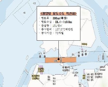 8일 전남도에 따르면 광양(여천)항 묘도수도 항로 직선화 사업은 2023년부터 2029년까지 총사업비 1천374억원을 들여 준공할 계획이다.
