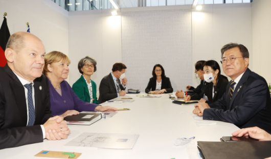 문 대통령은 지난 10월31일 G20 참석차 방문한 로마에서 메르켈 전 총리와 정상회담을 하는 과정에서 당시 총리 후보이자 재무장관 겸 부총리였던 숄츠 총리와 만난 적 있다.