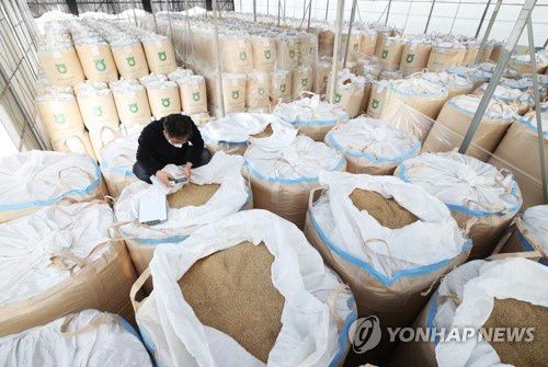 양곡장에 비축돼 있는 쌀. [사진 = 연합뉴스] |