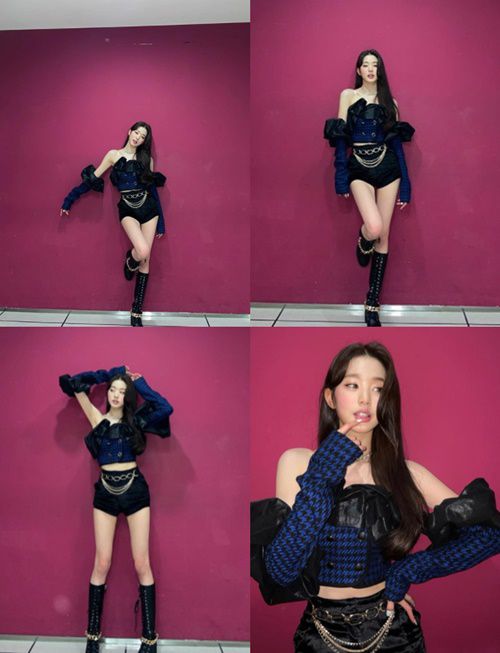 공개된 사진 속 장원영은 무대 의상을 입고 다양한 포즈를 취하고 있다.