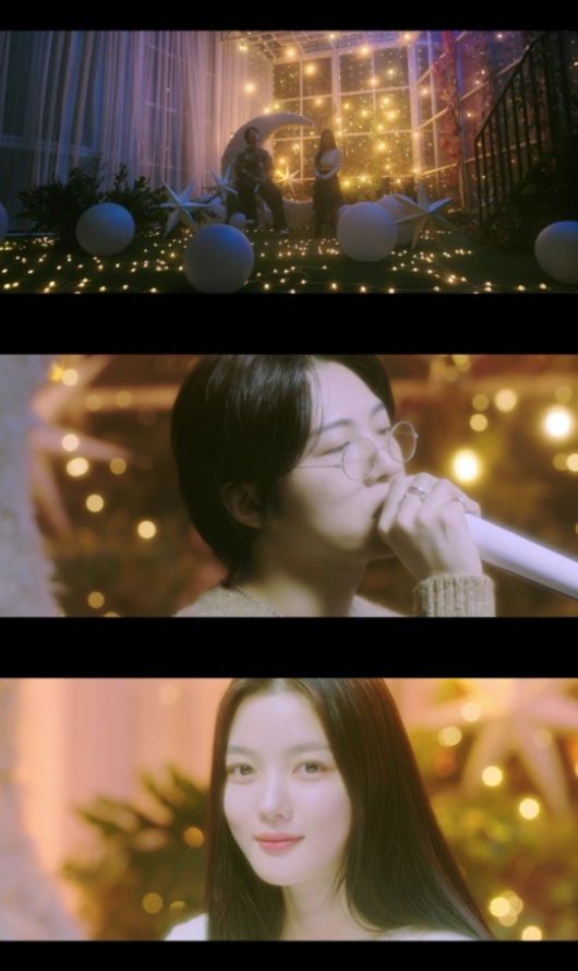 공개된 영상 속 김유정과 기리보이는 겨울 분위기를 물씬 풍기는 화려한 전구들이 가득한 공간 속에서 의자에 앉아 따뜻하면서도 아련한 감성을 자아냈다.