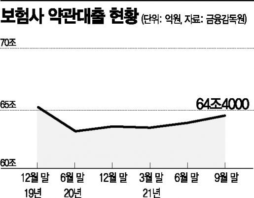 10일 금융감독원 통계에 따르면 지난 9월 말 기준 보험사 약관대출 잔액은 64조4000억원으로 전분기 대비 6000억원 증가했다.