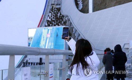 스키점프 테스트 이벤트 촬영하는 중국 기자 |