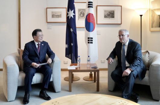[이데일리 김정현 기자] 문재인 대통령이 13일(현지시간) 스콧 모리슨 호주 총리와 정상회담을 하고 양국 관계를 포괄적 전략 동반자 관계로 격상시켰다.