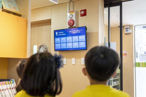 어린이집에 미세먼지 정보 알리미가 설치된 모습 |