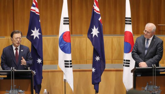 한편 중국과 관계가 악화된 호주를 문 대통령이 코로나19 이후 첫 국빈방문한 것과 관련해서는 문 대통령이 “호주 국빈방문은 중국에 대한 (한국의) 입장과는 아무런 상관이 없다”고 밝혔다. 호주와 중국은 대중 석탄수출을 둘러싸고 갈등을 빚어왔고 호주는 베이징 올림픽에 대한 보이콧까지 선언한 상태다.