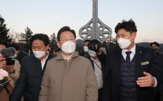이재명 더불어민주당 대선 후보가 지난 12일 경북 김천시 추풍령휴게소 경부고속도로 기념탑을 방문하고 있다. 김천 | 연합뉴스 |