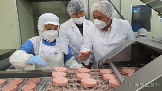 ▶독보적 패티 가공 기술= 주력사업인 프랭크버거는 수년간 R&D에 매진해 개발한 자체 브랜드다. 차별화된 맛을 위해 트리밍육과 혼합육은 사용하지 않는다. 이 때문에 패티를 만들 때 조미를 전혀 하지 않는다. 소고기 특유의 풍미를 살리기 위해서다. 패티 가공 기술도 독보적이다. ‘육즙 손실과 식감 유지’를 위해 냉동상태에서 모든 가공이 이뤄진다. 고품질 패티 생산이 가능한 이유는 OEM 제조방식이 아니라 자체 생산인프라를 구축했다는 점이다. 남들이 쉽게 모방할 수 없는 영역이다.