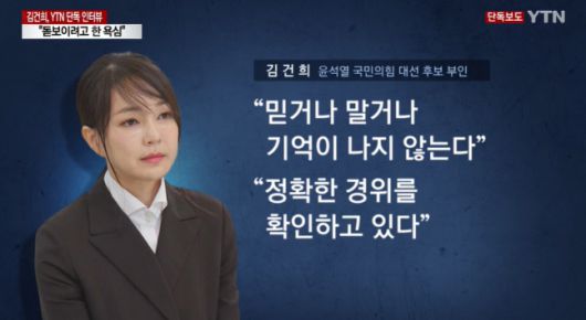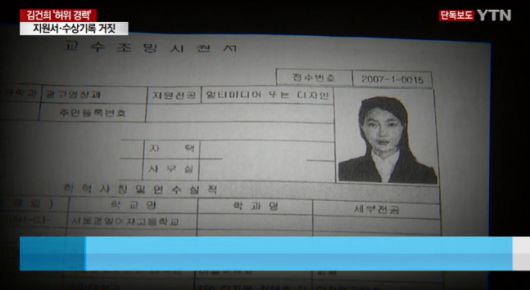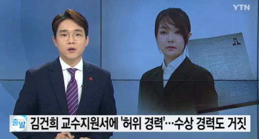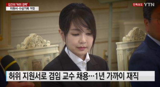 YTN은 14일 “김건희 씨가 과거 한 대학에 제출한 교수 임용 지원서에 허위 경력과 가짜 수상 기록이 기재된 사실이 확인됐다. 당시 교수 임용 지원서를 보면 설립되지도 않은 협회에서 일했다고 했거나 받지도 않은 대상을 받은 것처럼 적혀 있기도 했다”라고 보도했다.